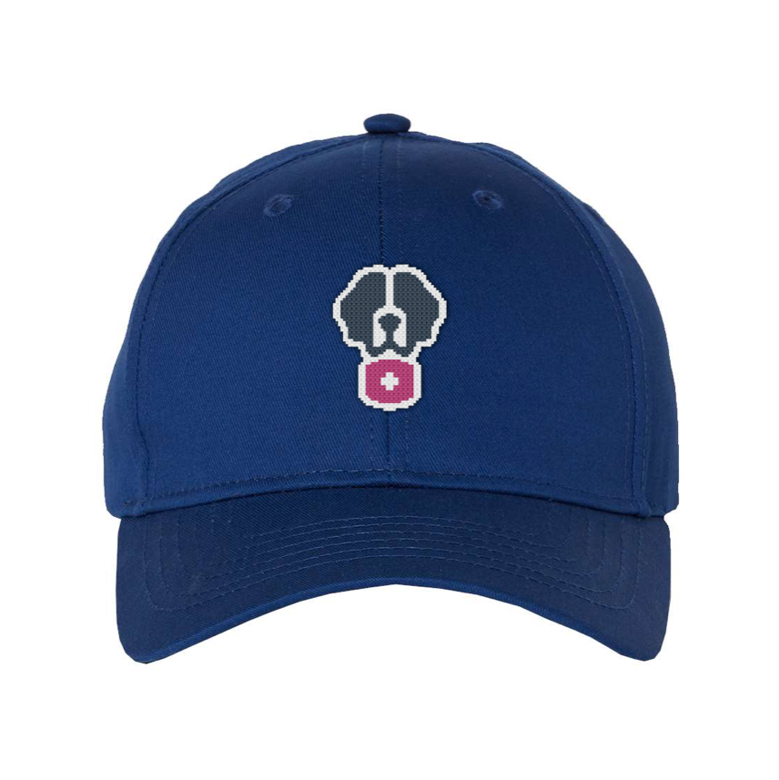 Six panel cotton twill hat adorned with 100% hand stitched needlepoint. The size is adjustable by a nickel slide on the back of the hat.